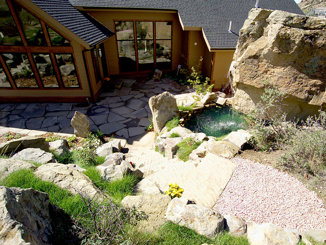 Scott and Tamra Millikan’s home represents an orchestrated effort between the designers, the builder and the home owner. The lot chosen was a challenging lot to deal with, Eaton and Yost brought the talent and creativity to the relationship to create and position the home, optimizing the views and foot print on the land for the Millikans. The many custom features in the home include: custom gourmet kitchen, custom iron rails, cherry moulding, custom tile work as well as the waterfalls coming off a large boulder in the back yard.